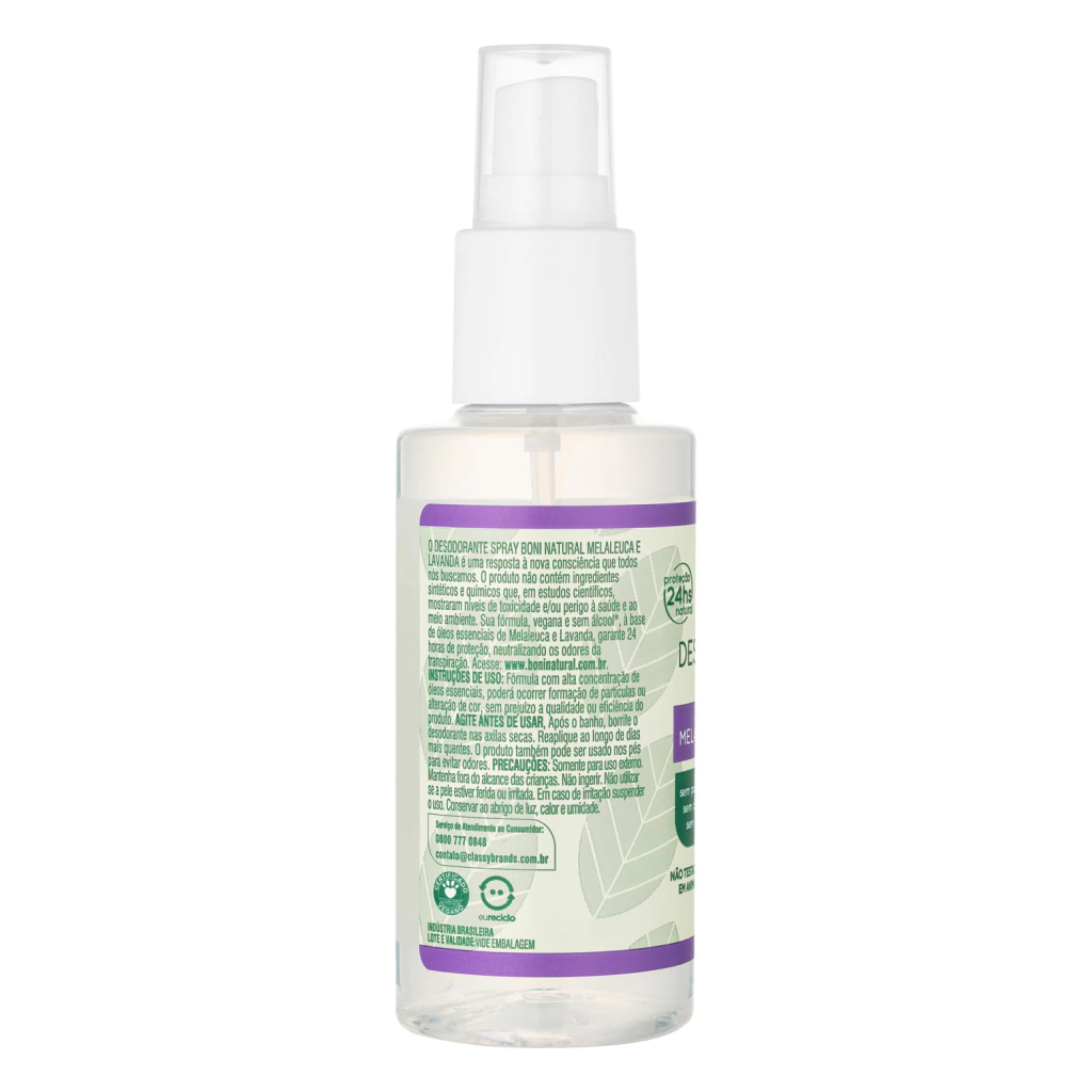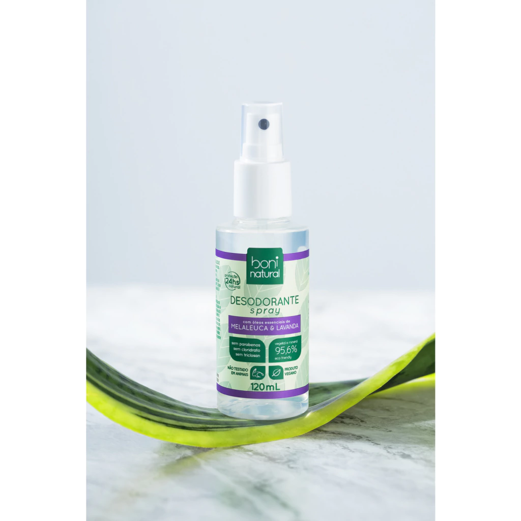 Revitalize sua rotina com o Desodorante Spray Melaleuca e Lavanda Boni Natural! Formulado com o poder da melaleuca, reconhecida por suas propriedades antibacterianas e cicatrizantes, ele ajuda a manter a pele fresca e protegida, enquanto a lavanda oferece um toque relaxante, promovendo calma e bem-estar. Juntas, essas essências criam uma combinação perfeita que proporciona proteção efetiva por 24 horas, envolvida em um aroma suave e reconfortante. Com uma fórmula livre de alumínio, parabenos, petrolatos e triclosan, este desodorante vegano é dermatologicamente testado, garantindo um cuidado seguro e gentil para a sua pele. Desfrute de uma experiência sensorial única que transforma seu dia a dia, celebrando a beleza natural com cada borrifada!